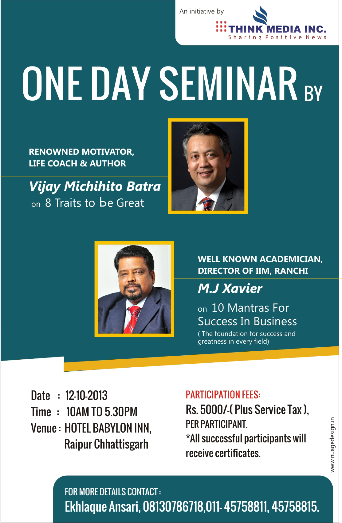 Think & Act Beyond The Box was held on 22nd November 2013, Mr. Vijay Batra facilitated “8 Traits to Be Great” & Prahlad Kakar – Ad Guru on “Creating Values Through Good Advertising”....